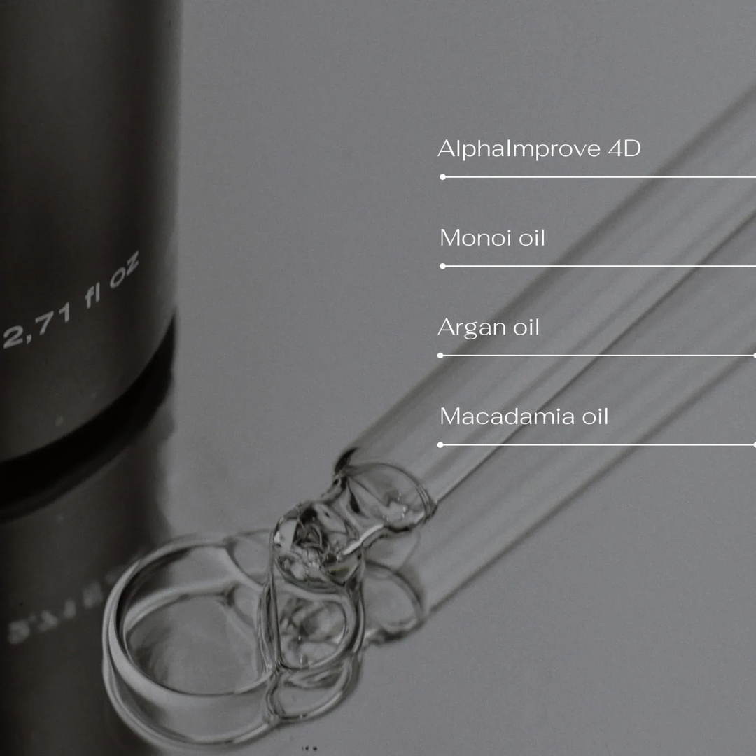 - AlphaImprove 4D–tikra inovacija kosmetikos komponentų pasaulyje. 100 % natūralus ir tvarus ingredientas, kurio efektyvumas yra įrodytas. Komponento sudėtyje esantys Pracaxi sėklų ir atalių aliejai intensyviai drėkina ir atkuria formavimo ir išorinių veiksnių pažeistus plaukus, stiprina plaukų sruogas, glotnina plauką, padeda išvengti vėlimosi. Bisabololis, turintis antioksidacinių savybių, padeda apsaugoti plaukus nuo saulės poveikio ir kitų išorinių veiksnių.