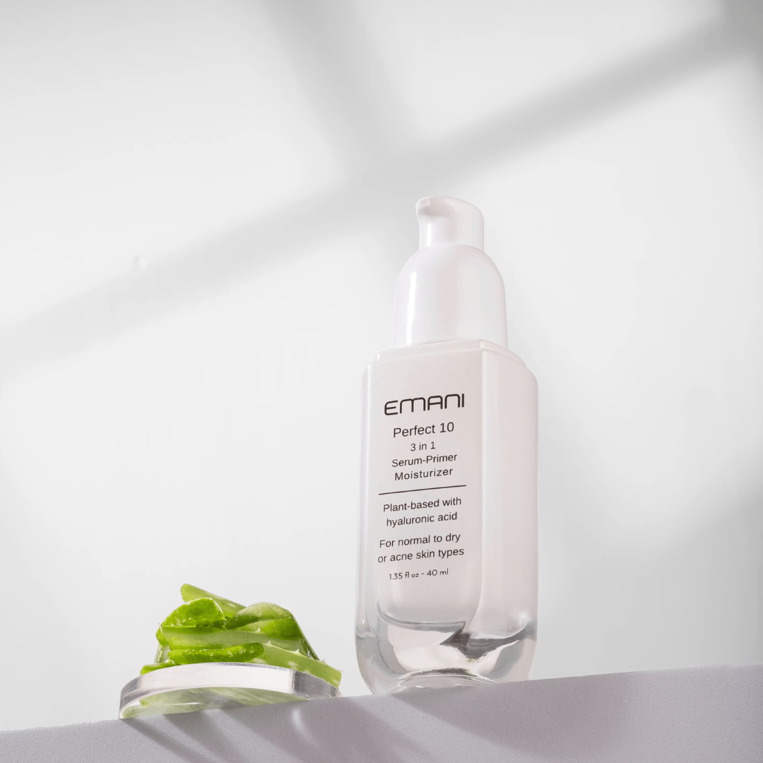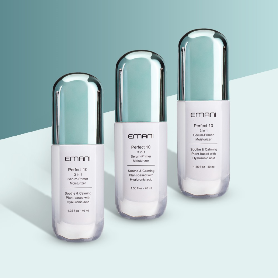 ,,Emani Perfect 10” serumą-bazę galima naudoti po odos šveitimo, lazerio procedūrų ar mikroadatinės terapijos, kai jaučiamas odos uždegimas ir ją reikia nedelsiant nuraminti. Sudėtyje esantis alavijas nuramina sausą, jautrią ir sudirgusią bei pažeistą odą. Jis pasižymi antioksidacinėmis, drėkinančiomis ir odą raminančiomis savybėmis. Avokadas yra puikus odą papildančių riebalų rūgščių šaltinis, įskaitant omega-3 linoleno rūgštį, omega-6 linolo rūgštį, oleino rūgštį ir beta sitosterolį.