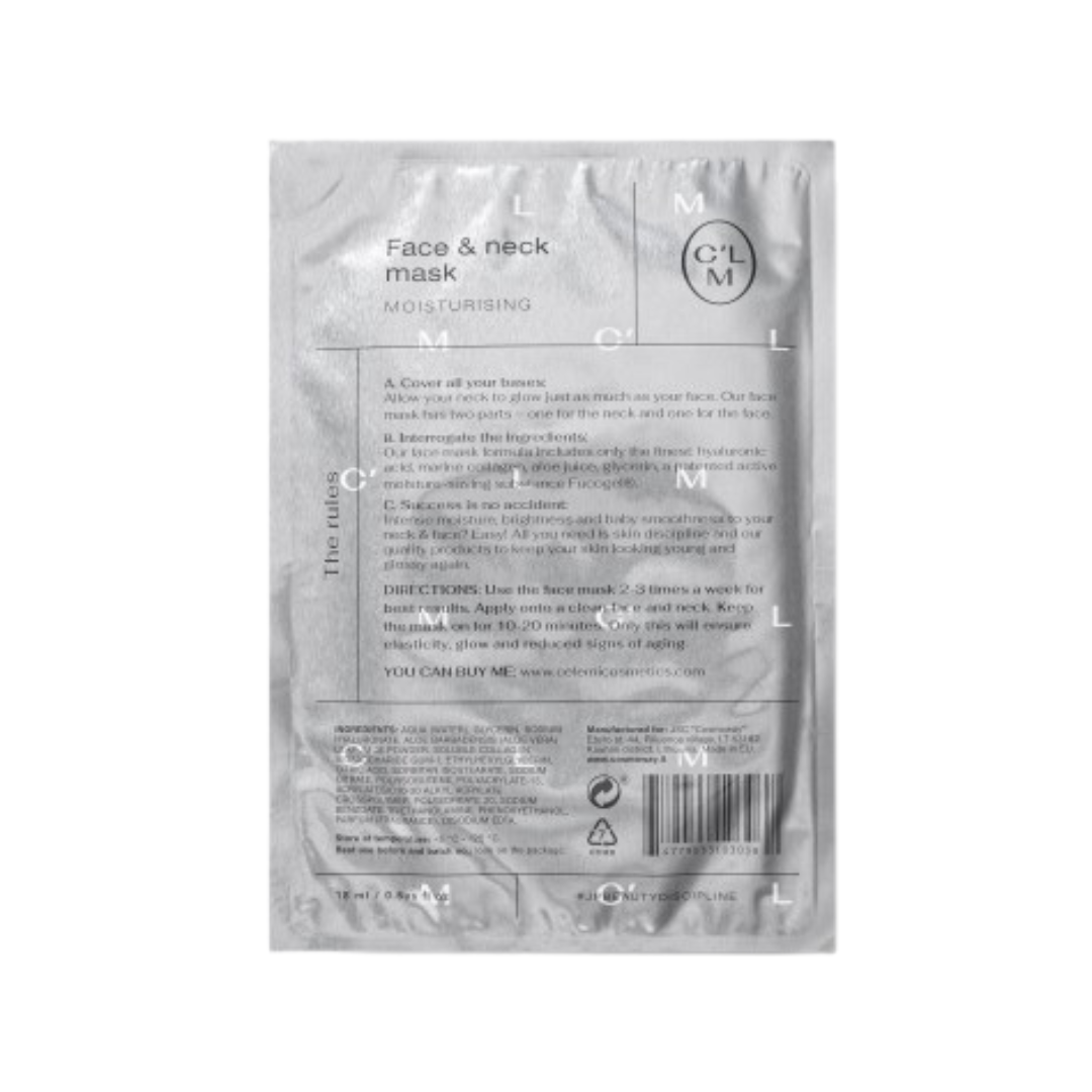 Dvi dalys – viena dažniausių grožio disciplinos klaidų – per mažas dėmesys kaklo odai. Būtent ji viena greičiausiai išduoda senėjimo procesus. Šios srities oda turi mažiau riebalinių liaukų ir yra plonesnė, o tai reiškia, kad ji labiau linkusi į dehidrataciją, raukšles, stangrumo ir elastingumo praradimą. Tad kaklo oda turi būti rūpinamasi tikrai ne mažiau nei veido. CELEMI veido ir kaklo kaukė turi dvi atskiras dalis tiek veido, tiek kaklo odos zonoms. Taigi nuo šiol jūsų kaklo oda gaus pakankamai dėmesio.