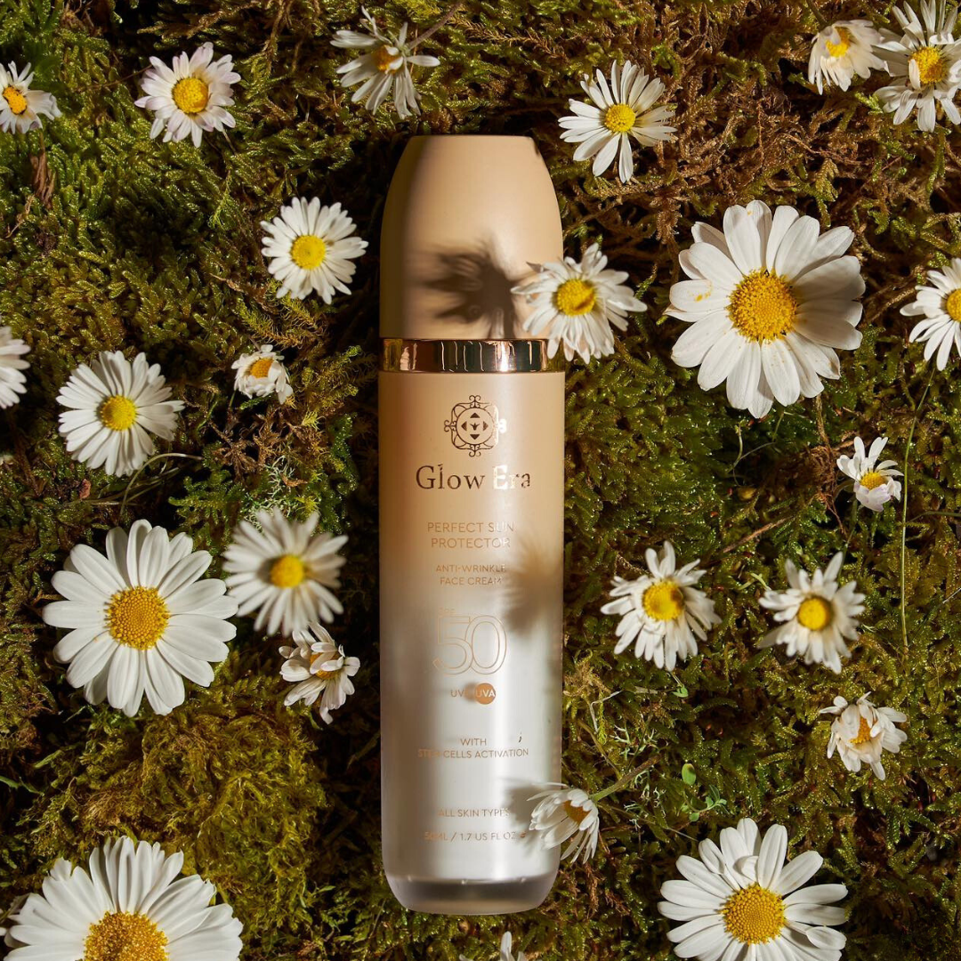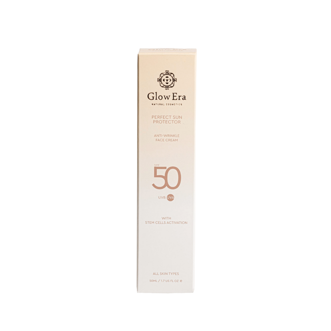 Apsauginis veido kremas nuo saulės – Perfect Sun Protector SPF50 iš Glow Era – yra praturtintas keturių augalų kamieninėmis ląstelėmis. Kremas skirtas kovai su senėjimu apsaugai nuo UV-A ir UV-B spinduliuotės ir fotoamžiaus. Keturių augalų kamieninių ląstelių galia leis mėgautis aukšta saulės apsauga ir tuo pačiu metu suteikdamas efektyvią regeneraciją.